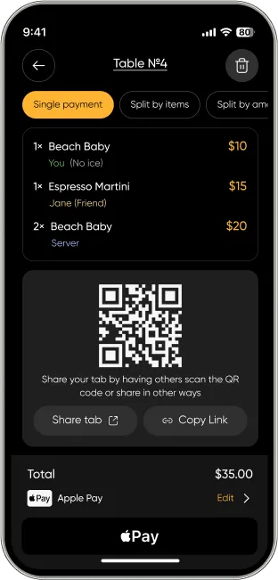Guests pay instantly from their phones. Tabs close automatically, and receipts are digital. no walkouts or lost cards.