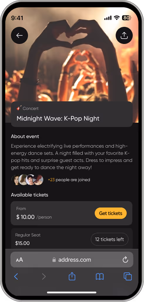 Guests purchase tickets online, receive a digital pass, and scan in seconds at the door. No paper tickets, no bulky hardware, no bottlenecks. Lines stay short, staff stress less, and guests head straight to the show.